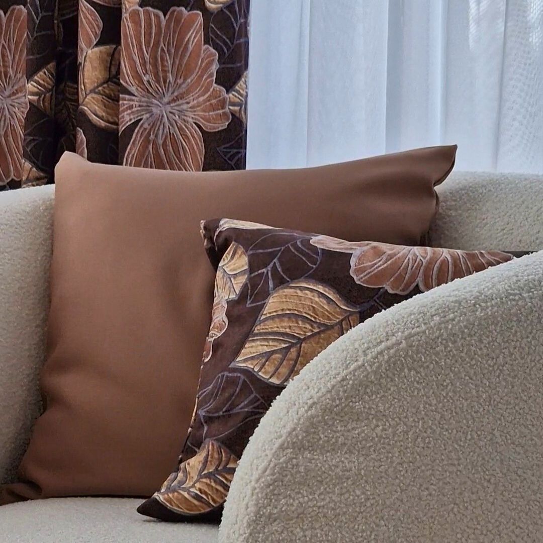 Velvetowa poszewka dekoracyjna w eleganckie brązowe kwiaty na ciemnym tle to propozycja, która łączy szyk i funkcjonalność. Wykonana z miękkiej, aksamitnej tkaniny, pięknie odbija światło, nadając wnętrzu luksusowego charakteru. Motyw liści i kwiatów w odcieniach brązu i złota sprawia, że poszewka świetnie komponuje się z wnętrzami urządzonymi w stylu klasycznym, glamour czy nowoczesnym. Idealnie pasuje do salonu, sypialni oraz eleganckich przestrzeni komercyjnych – np. hoteli czy gabinetów. Dzięki praktycznemu zamkowi błyskawicznemu łatwo ją zdjąć i utrzymać w czystości.