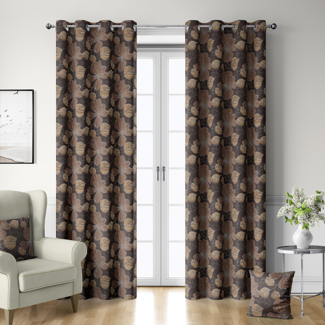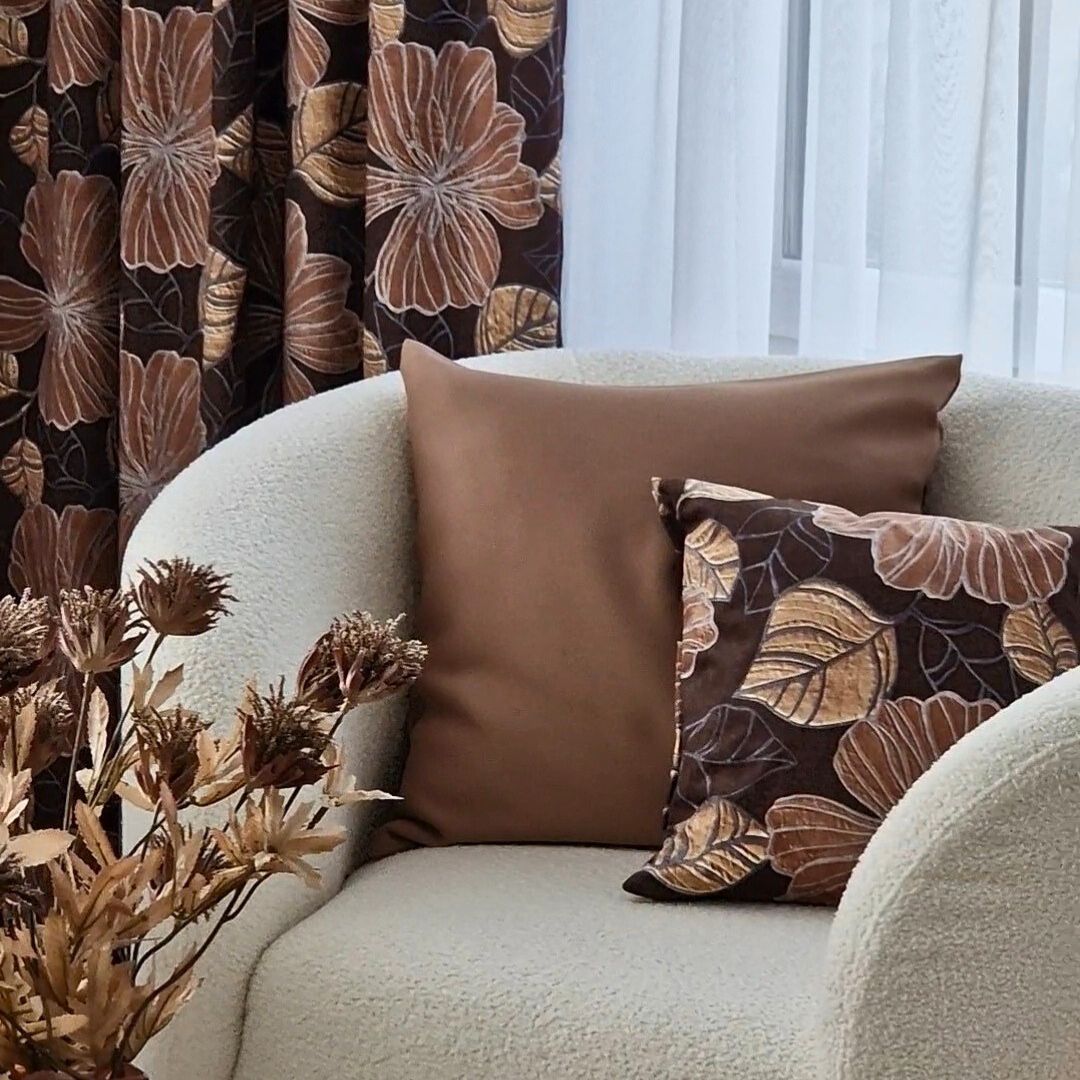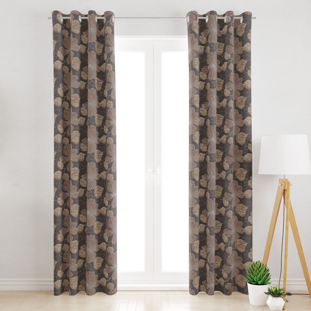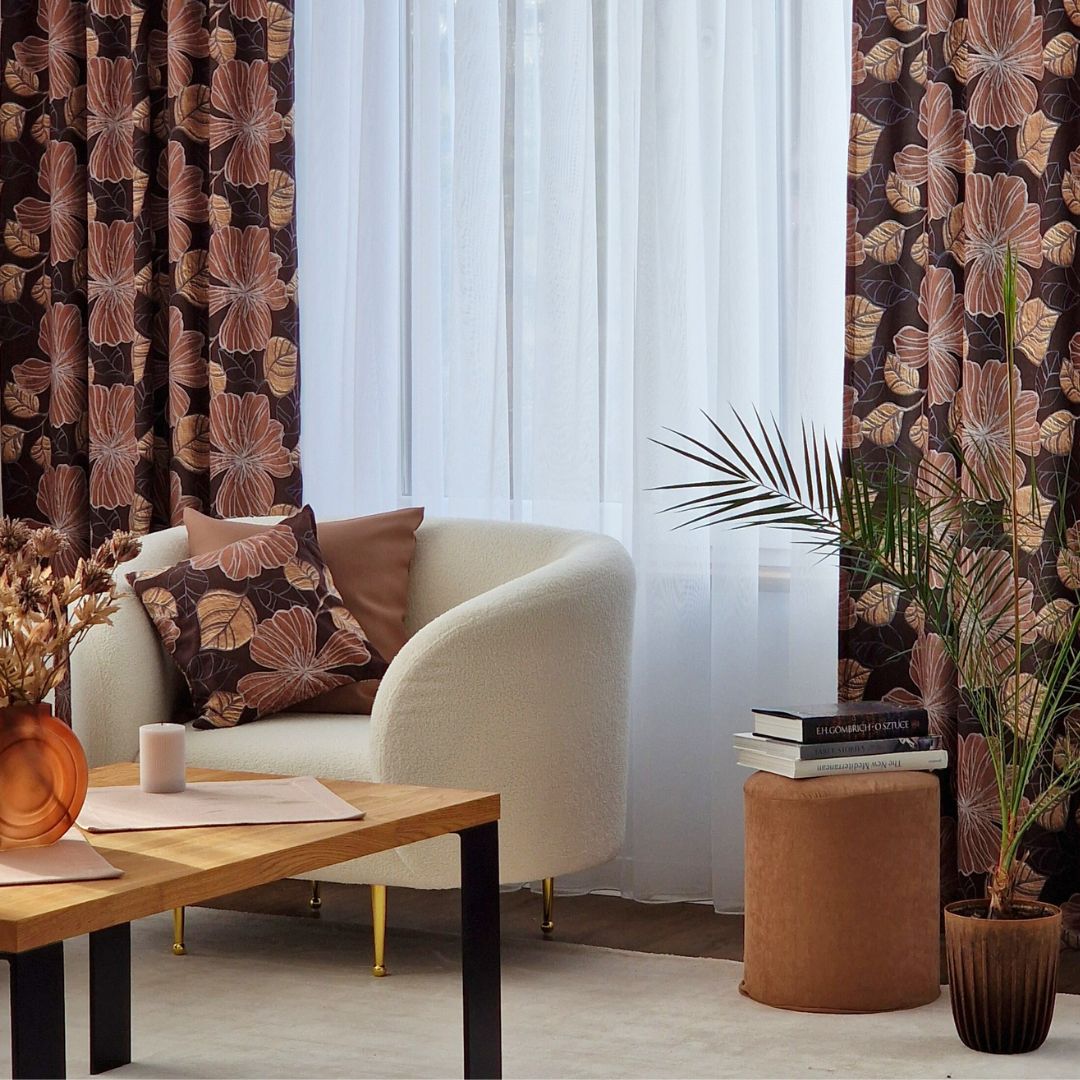 Brązowe zasłony velvetowe w liście na przelotkach – elegancja i wygoda w jednym