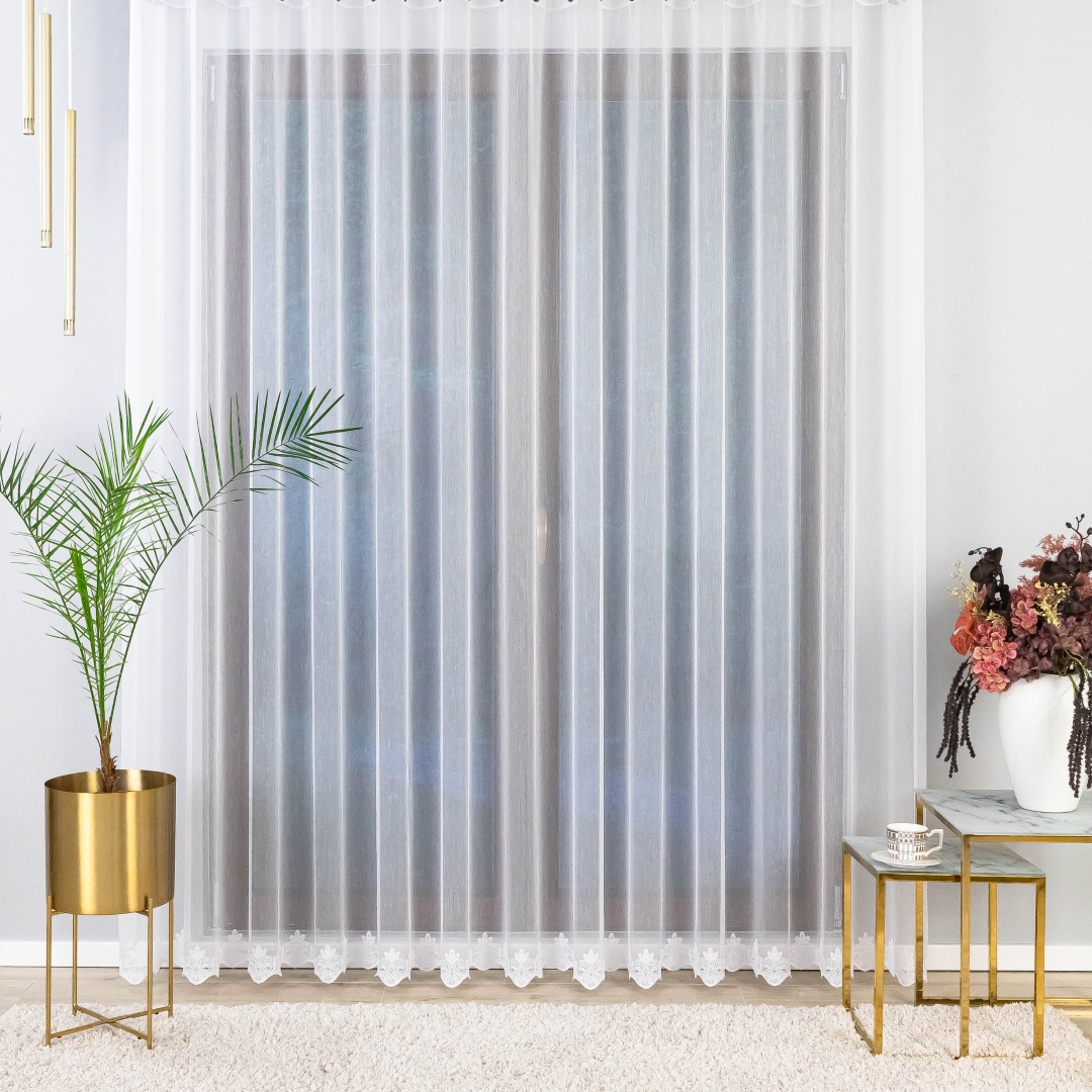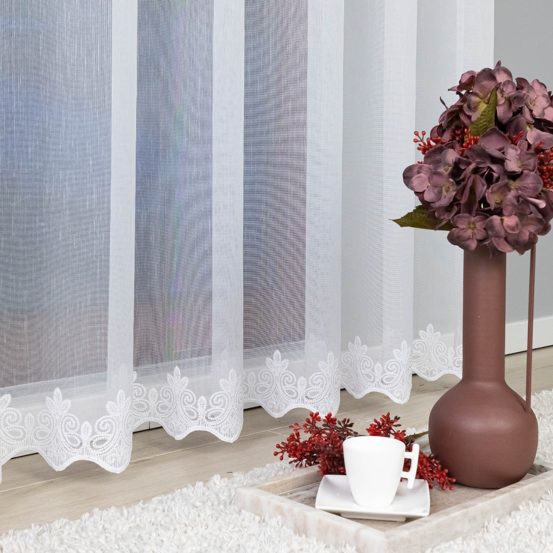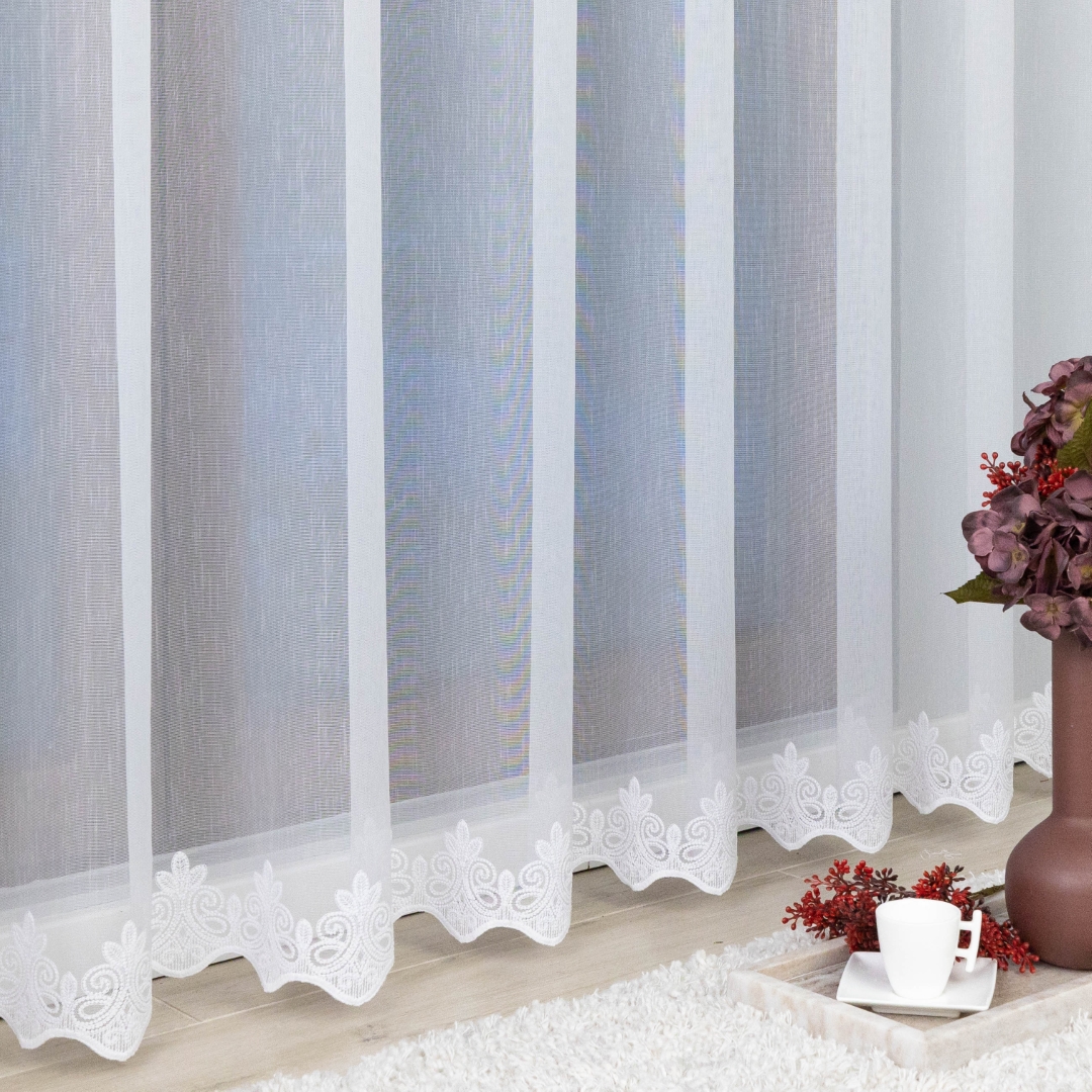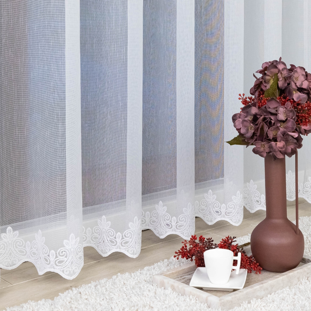 Ta firana świetnie wpasuje się w klasyczne, nowoczesne, skandynawskie czy romantyczne wnętrza. Doskonale sprawdzi się w salonie, jadalni, sypialni czy w pokoju gościnnym, dodając im elegancji i subtelnego charakteru. Biała kolorystyka sprawia, że jest uniwersalna i pasuje do każdej aranżacji.
