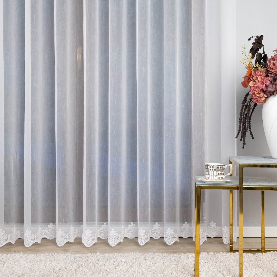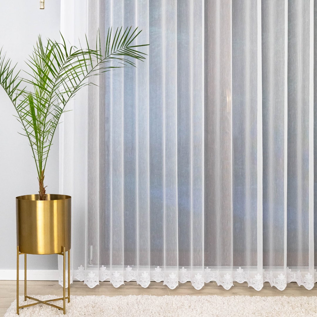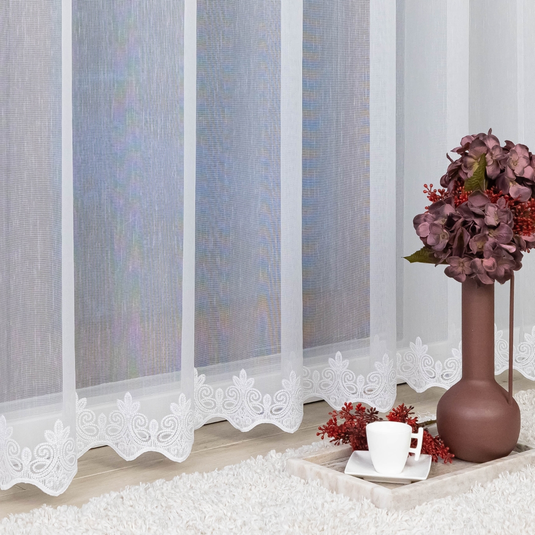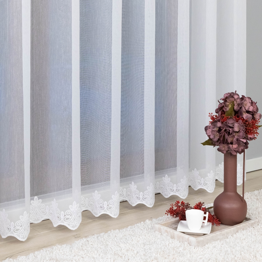 Ta firana świetnie wpasuje się w klasyczne, nowoczesne, skandynawskie czy romantyczne wnętrza. Doskonale sprawdzi się w salonie, jadalni, sypialni czy w pokoju gościnnym, dodając im elegancji i subtelnego charakteru. Biała kolorystyka sprawia, że jest uniwersalna i pasuje do każdej aranżacji.