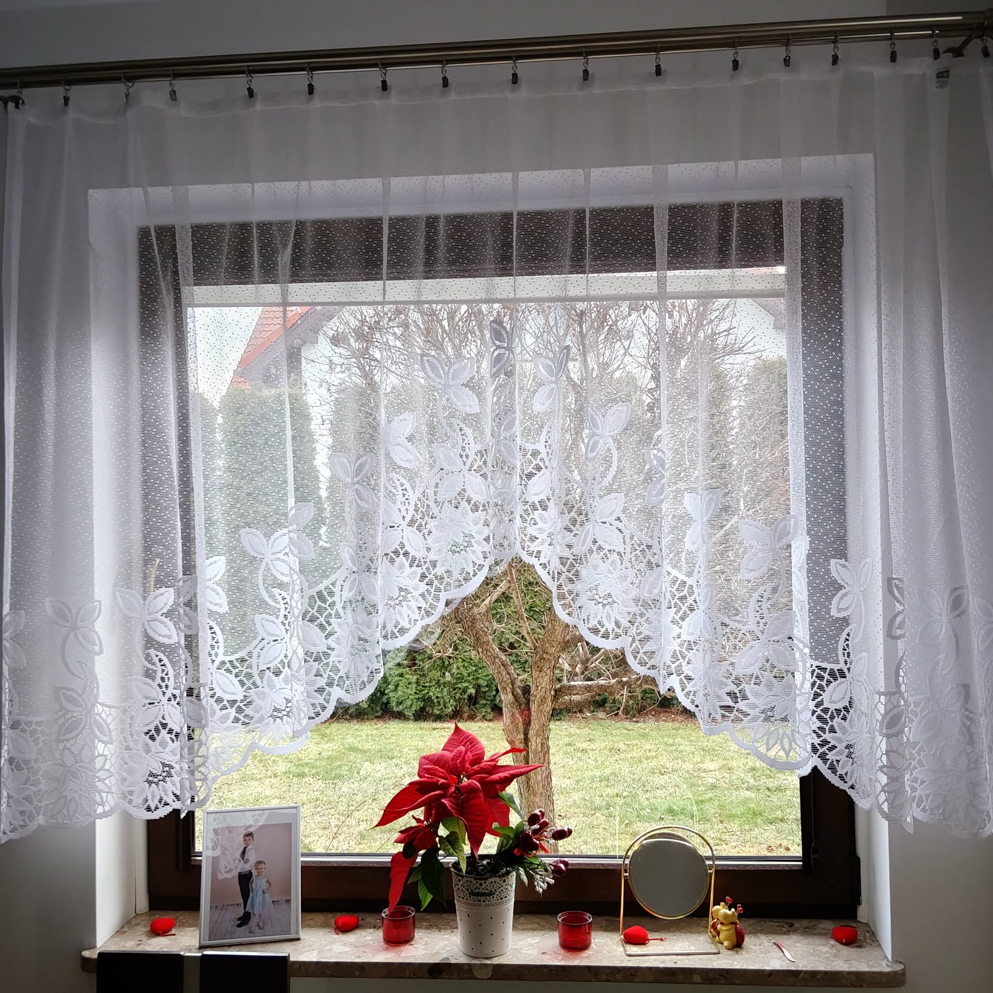 Firany są przepiękne. Delikatna koronka z kwiatowym wzorem nadaje elegancji i przytulności. Pięknie przepuszczają światło, tworząc jasną, ciepłą atmosferę, a jednocześnie zapewniają poczucie prywatności. Bardzo lekka i świetnie wykończona. Polecam