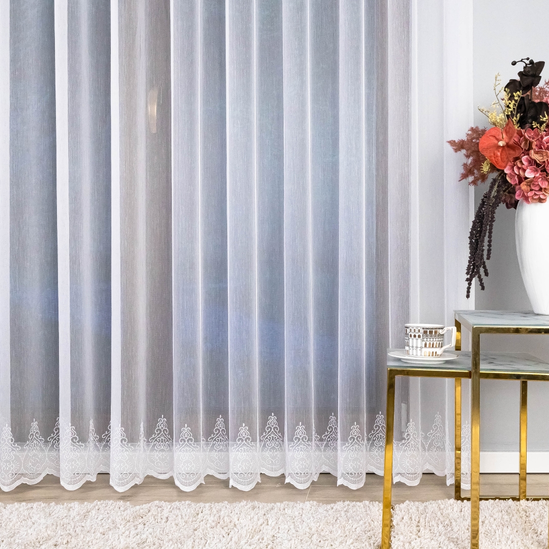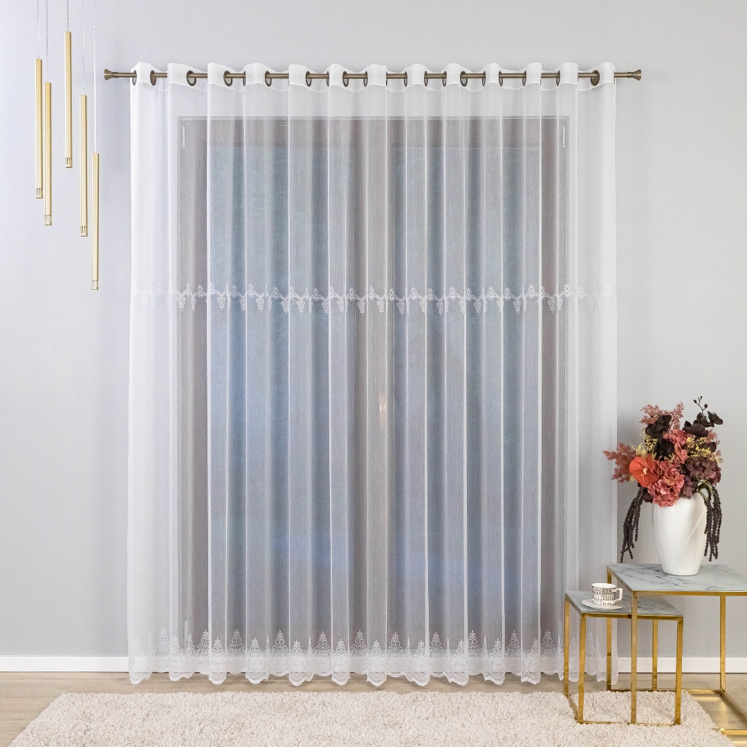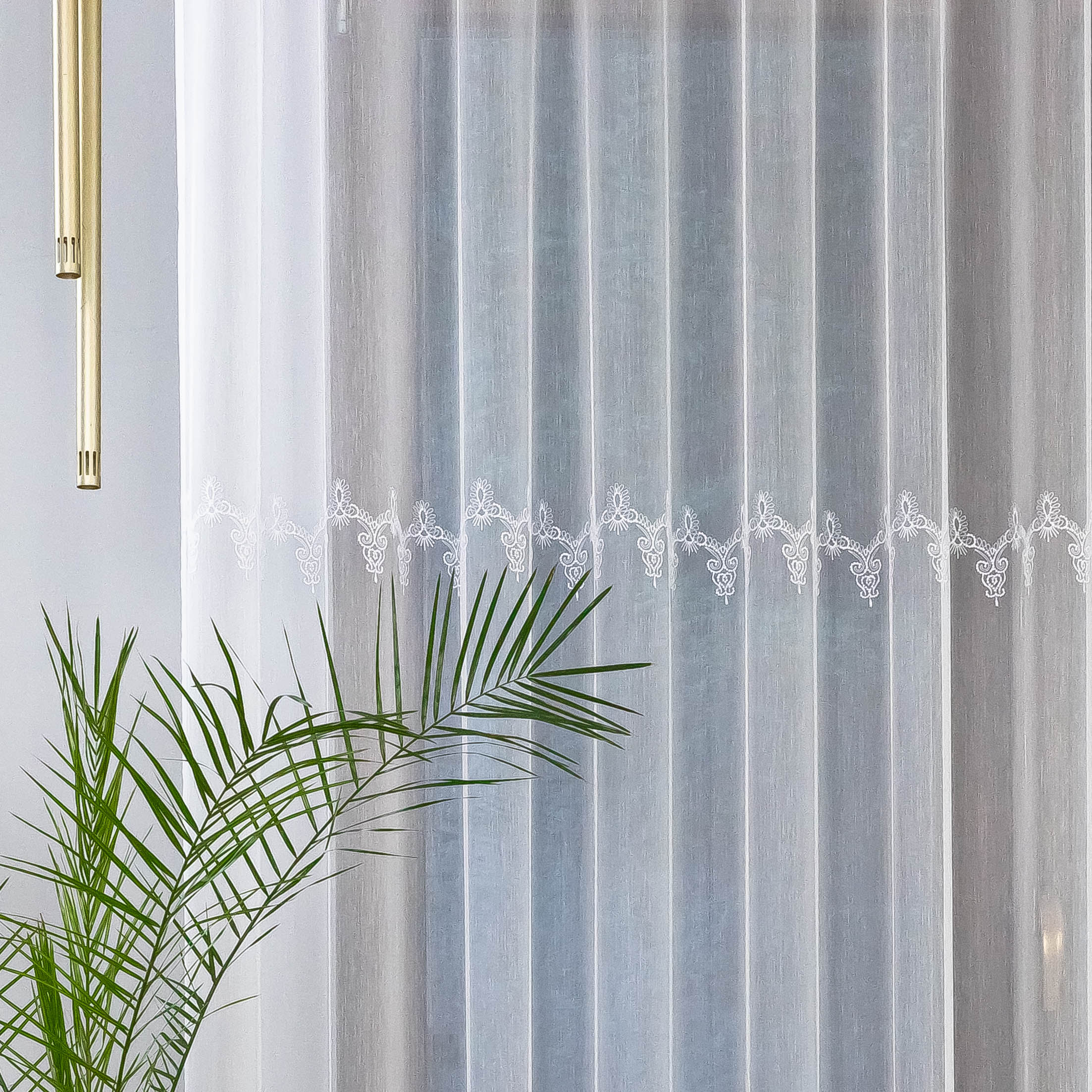 Elegancka gotowa firana markizeta z delikatnym haftowanym wzorem – na przelotkach to połączenie subtelnego stylu i nowoczesnej funkcjonalności. Lekka tkanina markizeta pięknie przepuszcza światło, nadając wnętrzu świeżości, a subtelny haft sprawia, że firana prezentuje się wyjątkowo elegancko.