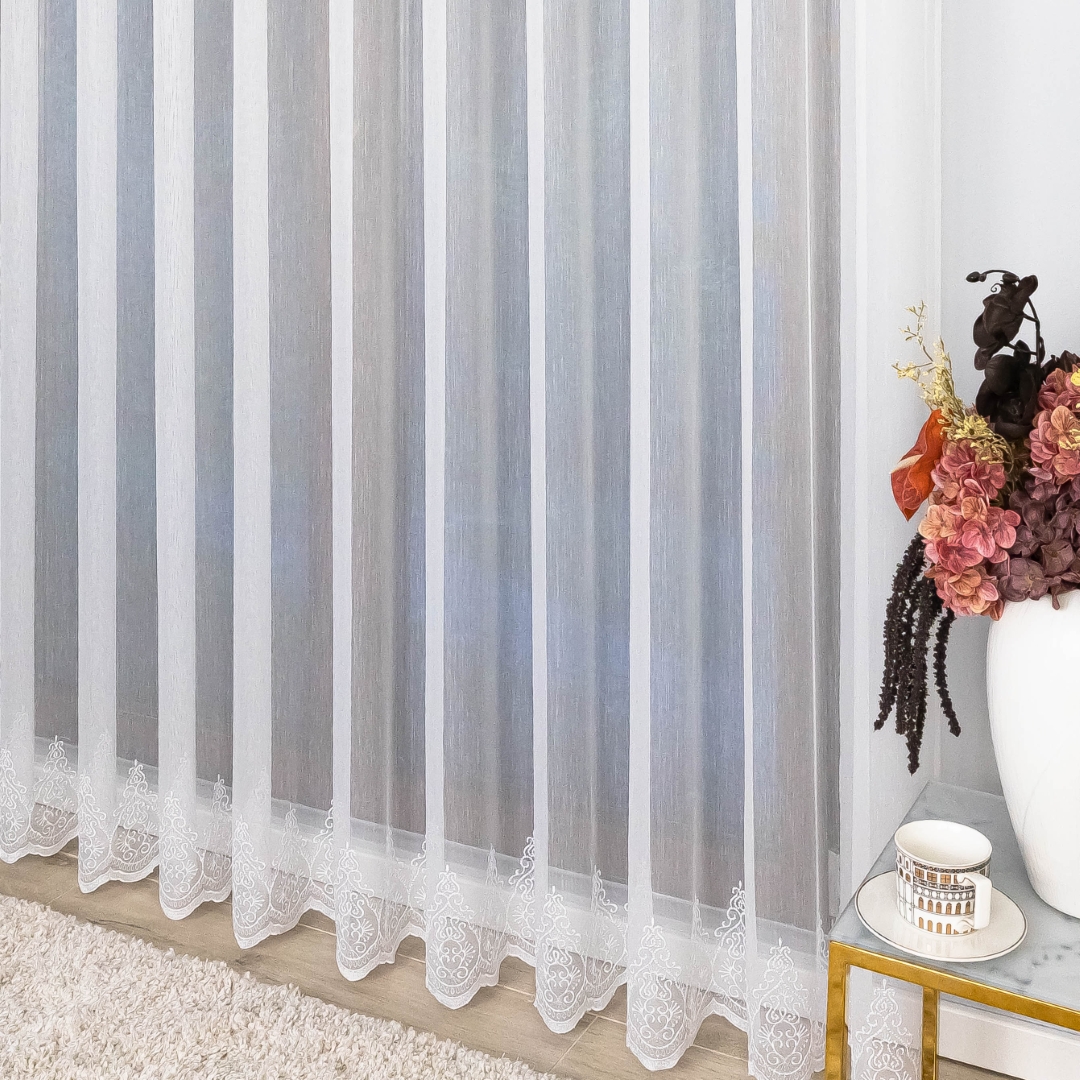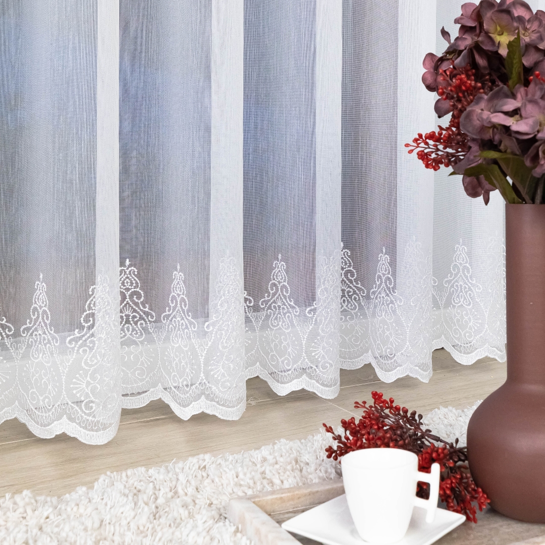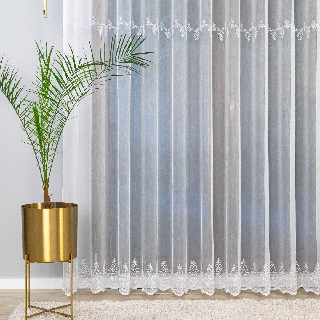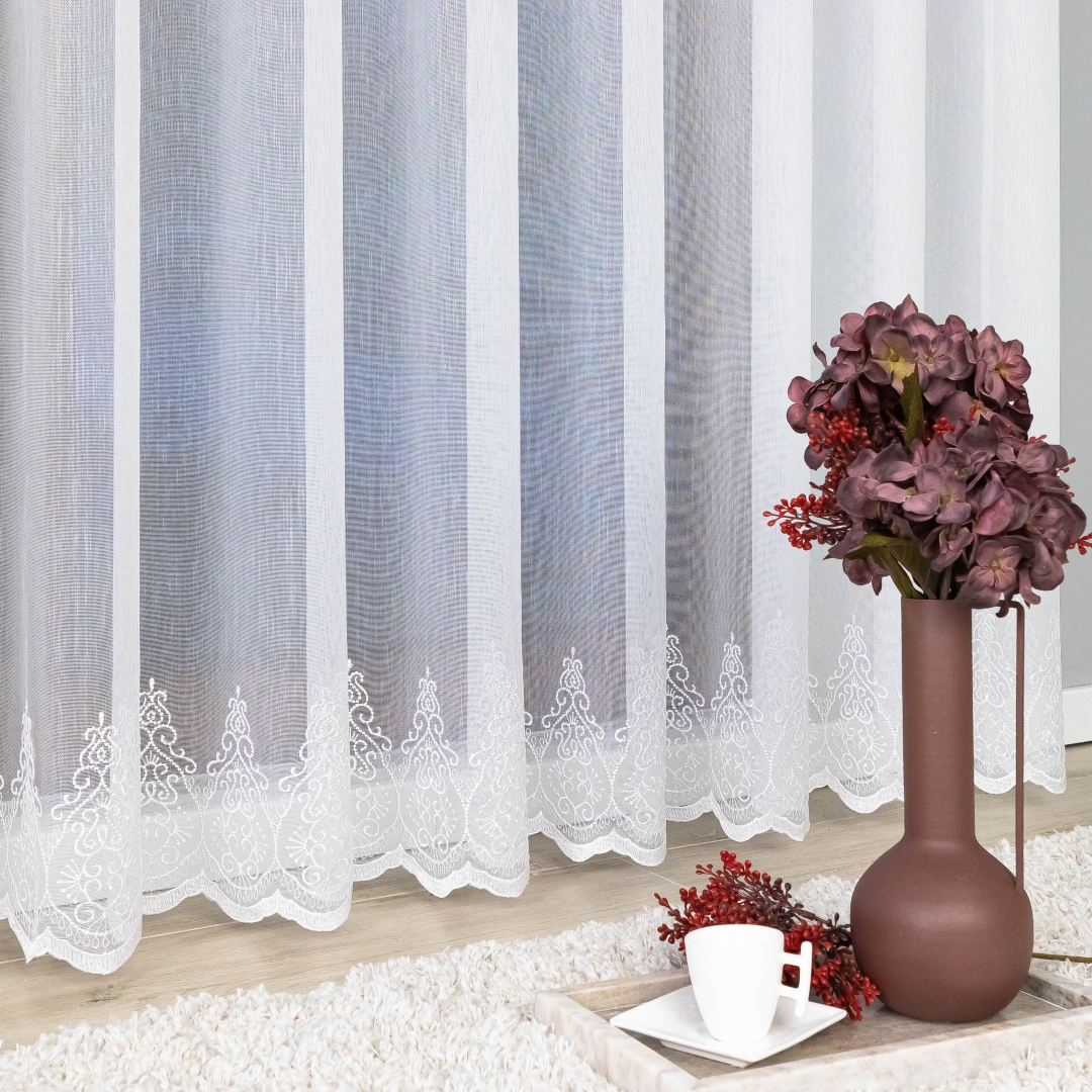 Elegancka gotowa firana markizeta z delikatnym haftowanym wzorem – na przelotkach to połączenie subtelnego stylu i nowoczesnej funkcjonalności. Lekka tkanina markizeta pięknie przepuszcza światło, nadając wnętrzu świeżości, a subtelny haft sprawia, że firana prezentuje się wyjątkowo elegancko.