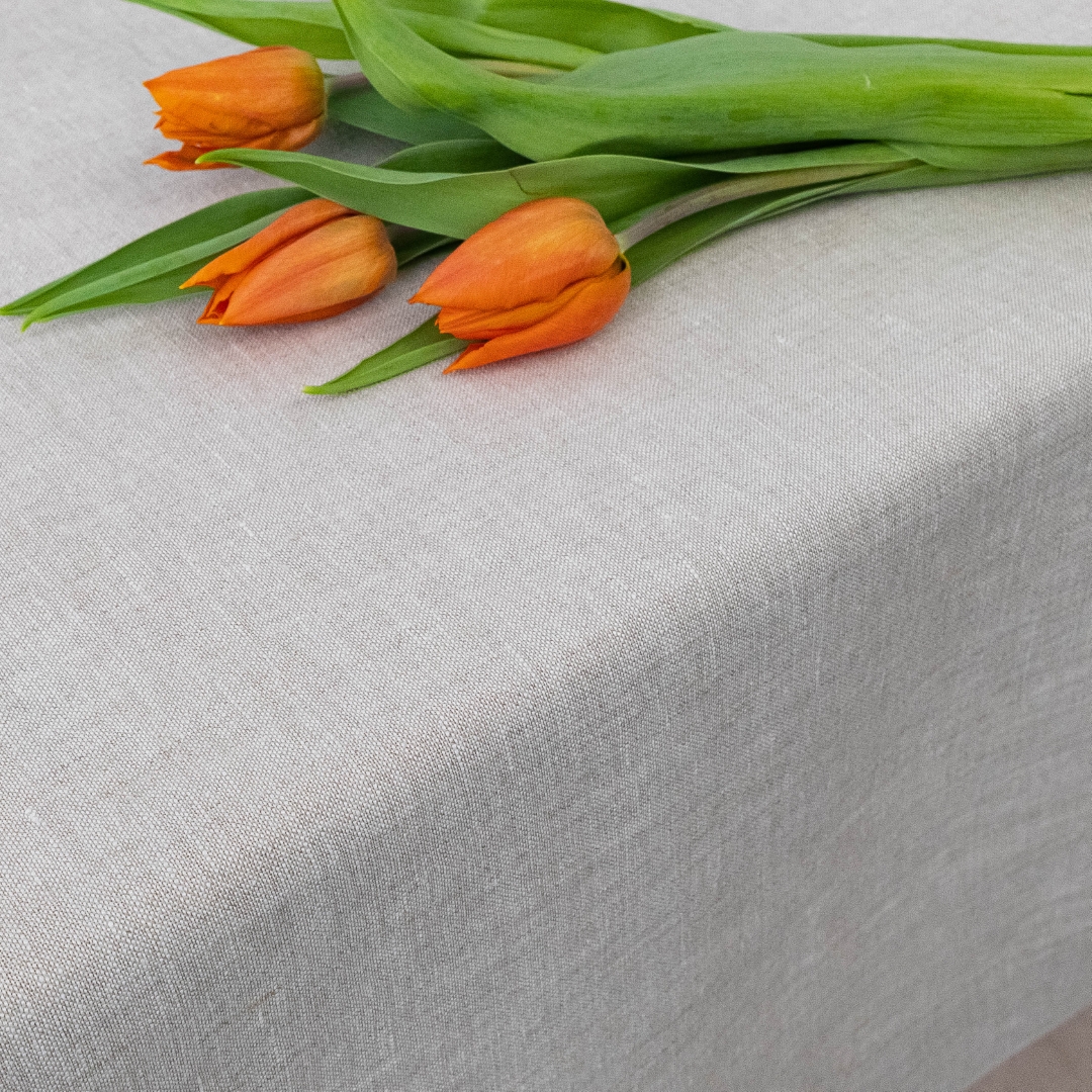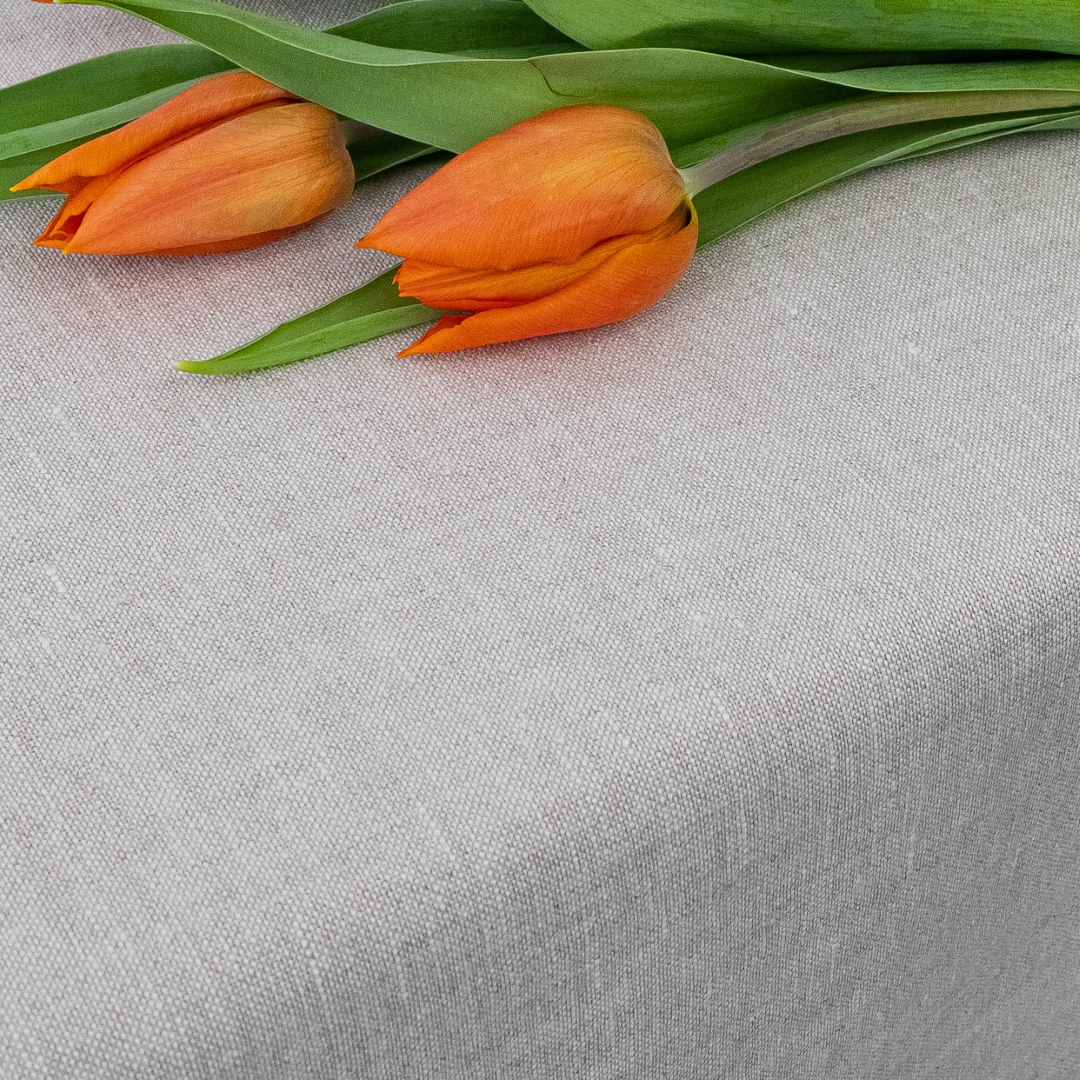 Len jest tkaniną naturalną, dlatego jego urok tworzą także cechy charakterystyczne dla tego materiału. Delikatne zagniecenia, miękki opad oraz subtelna nieregularność struktury są naturalne i podkreślają autentyczny charakter produktu. To właśnie dzięki nim obrus prezentuje się szlachetnie, lekko i ponadczasowo.