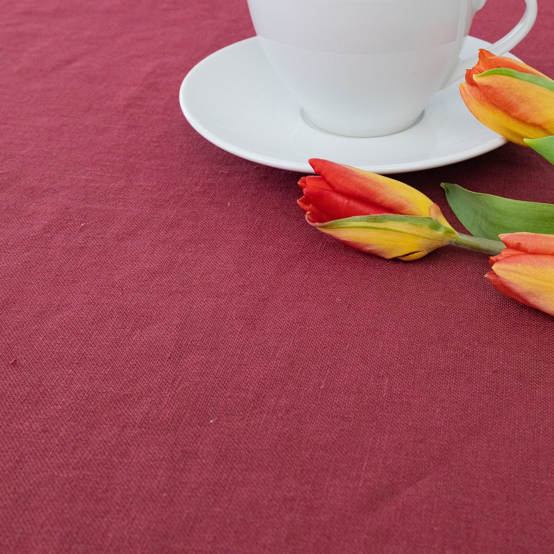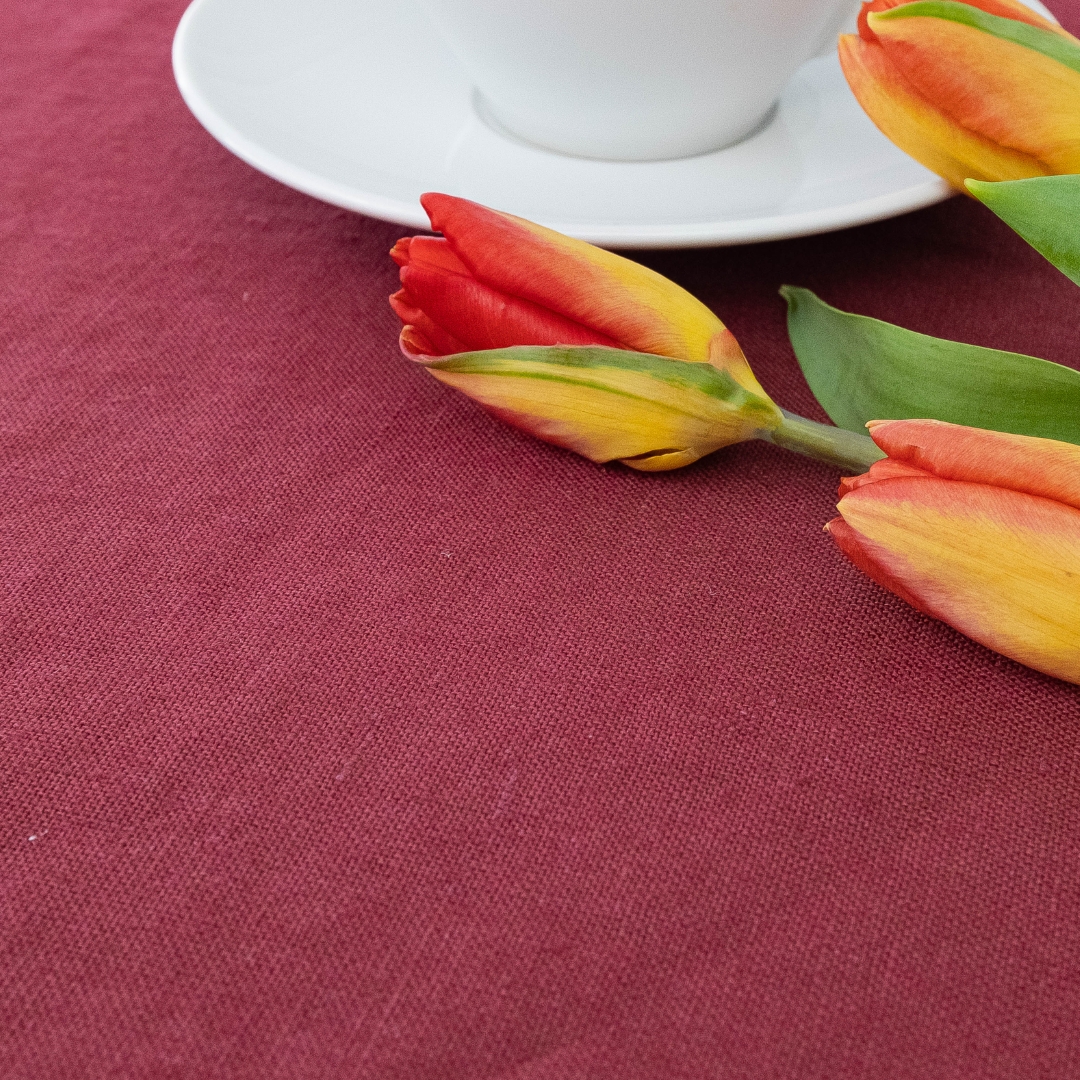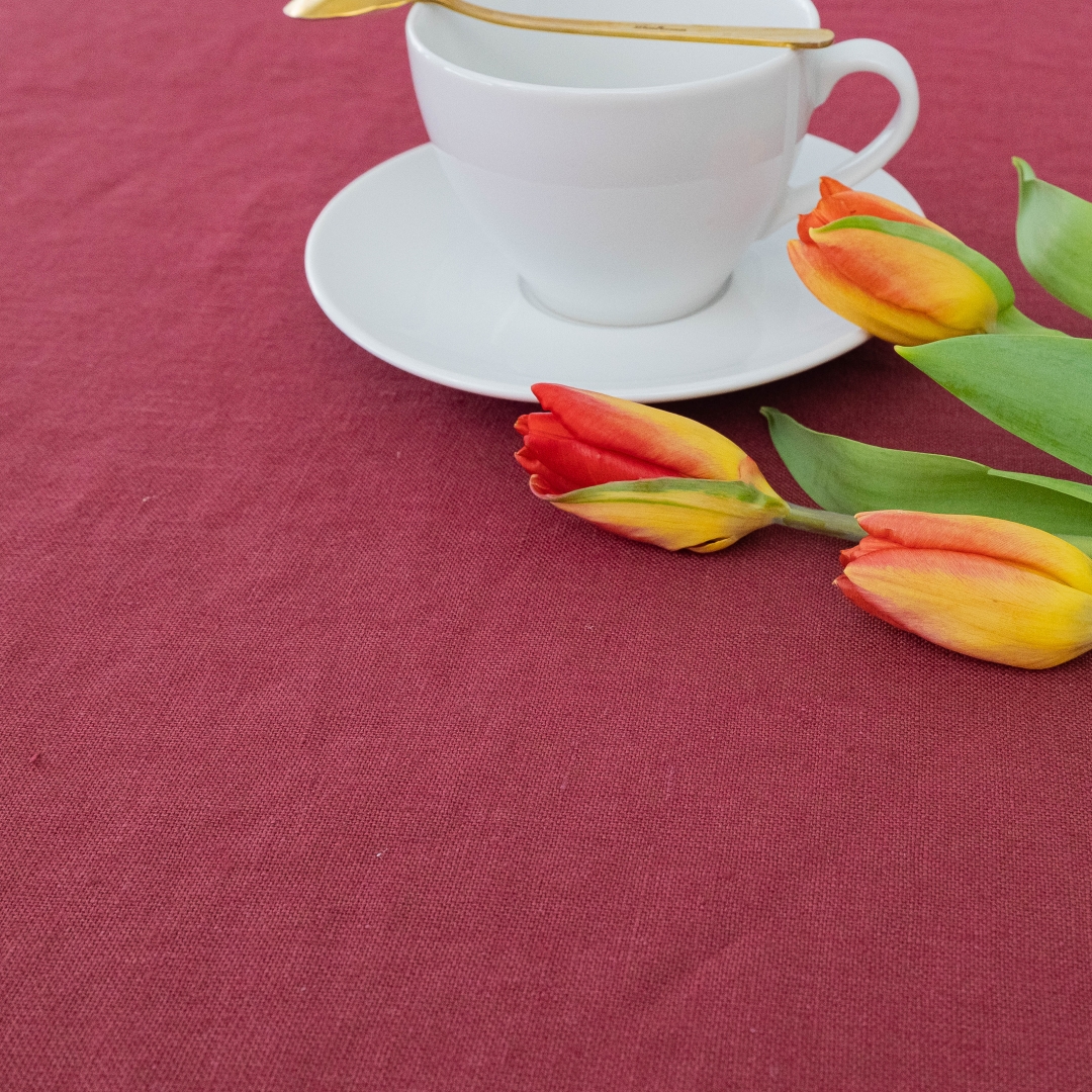 Obrus lniany 100% – Biking Red to propozycja dla osób, które cenią naturalne tkaniny, wyrazistą kolorystykę i ponadczasowy styl. Wykonany z 100% lnu, zachwyca naturalną lnianą strukturą, miękkim opadem oraz swobodną, elegancką formą, która pięknie układa się na stole.