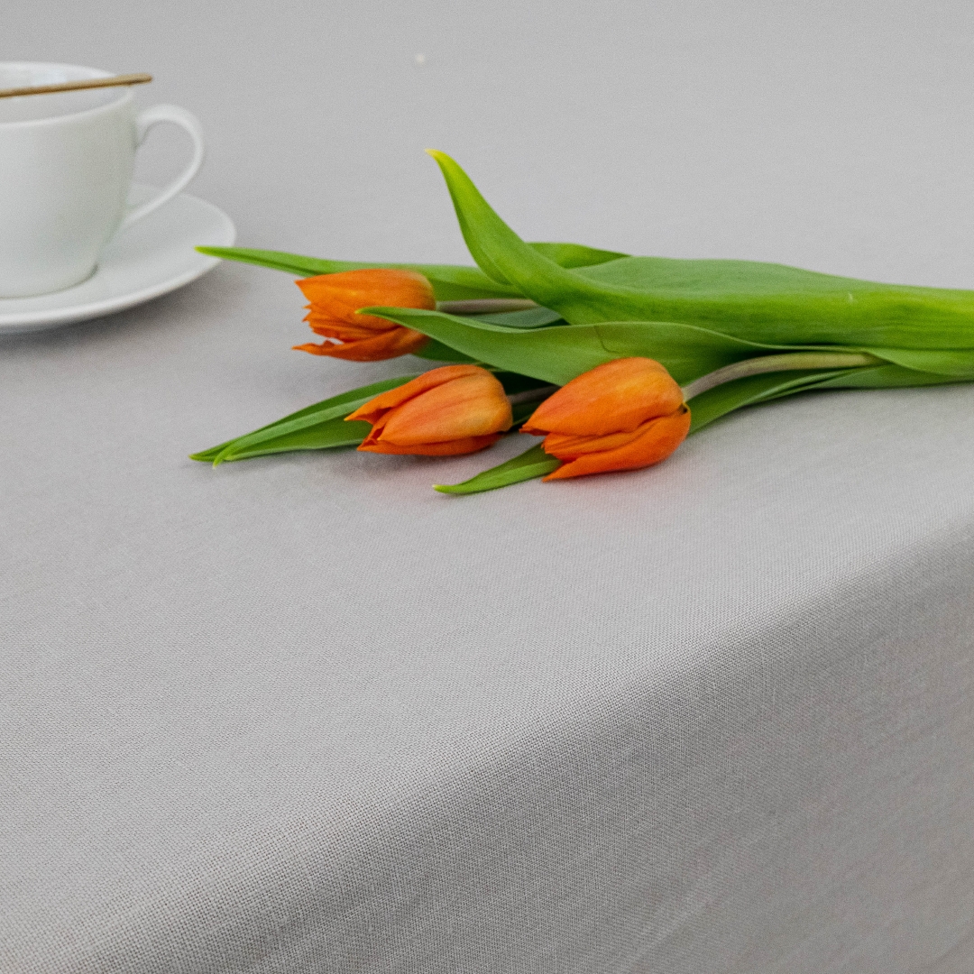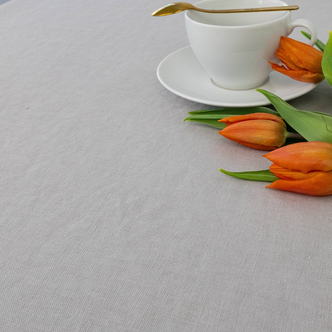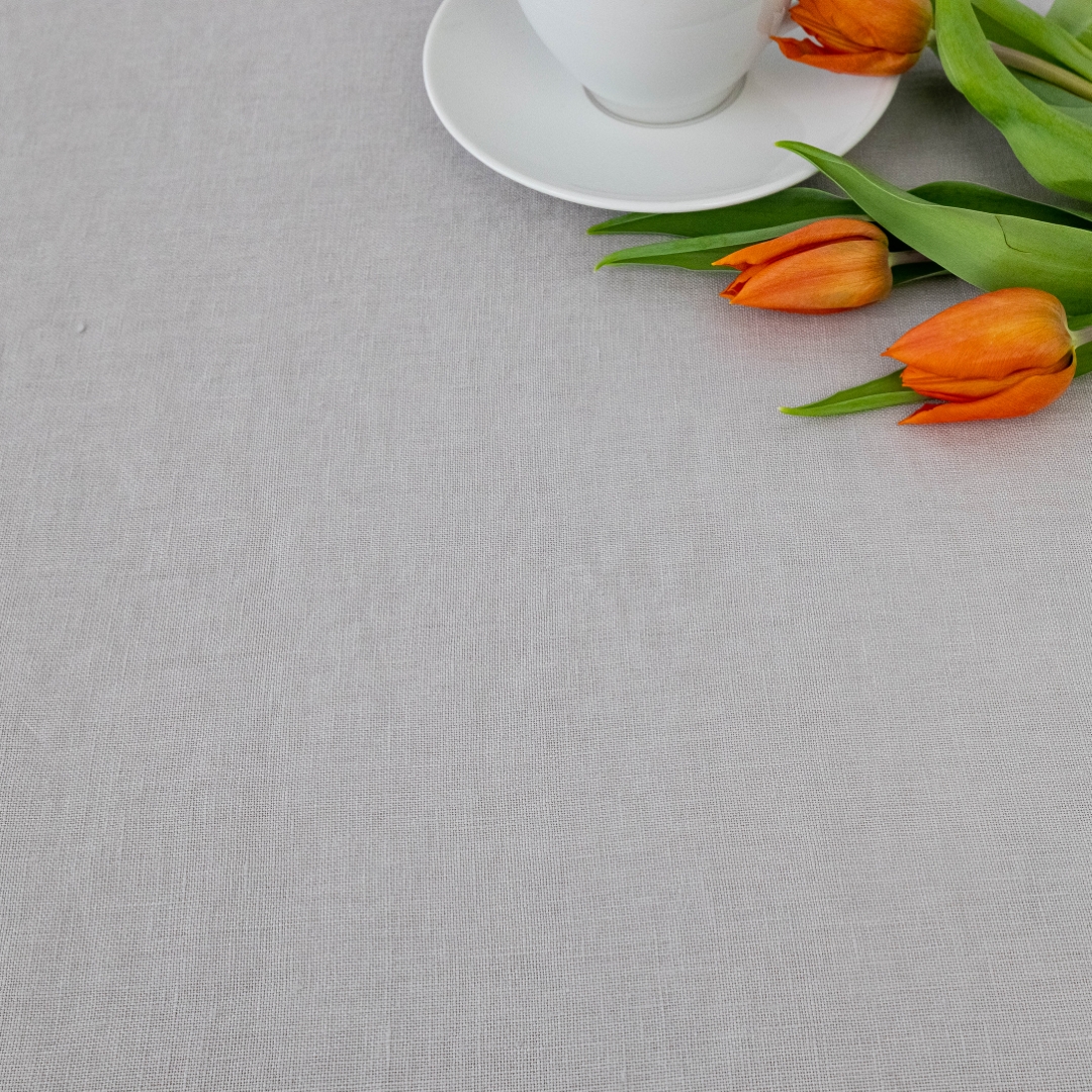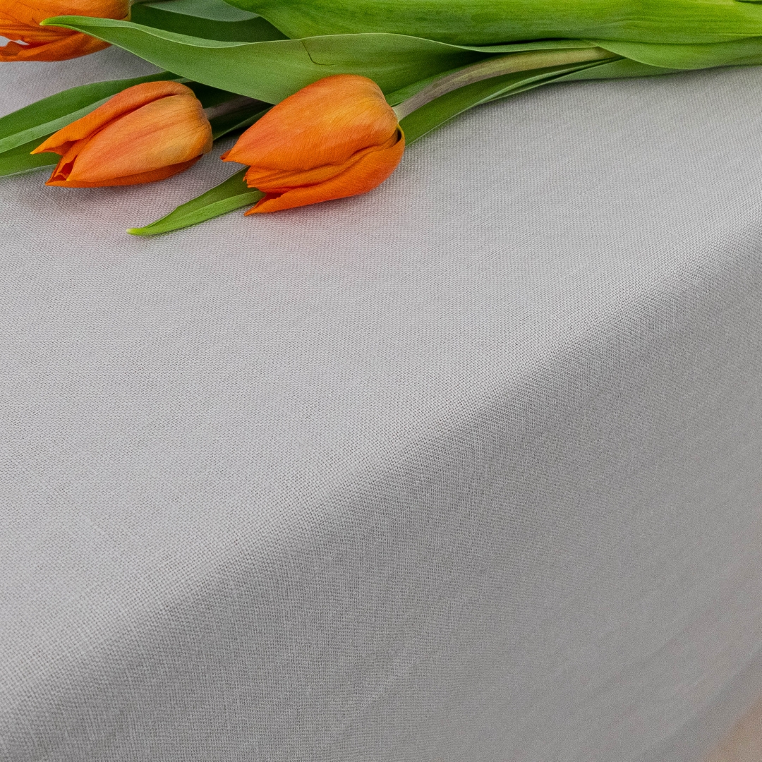 Obrus lniany Light Grey to propozycja dla osób, które cenią naturalne tekstylia stołowe, spokojną kolorystykę i ponadczasową estetykę. Jasnoszary odcień prezentuje się subtelnie, elegancko i bardzo uniwersalnie, dzięki czemu łatwo dopasować go do wielu stylów wnętrz.