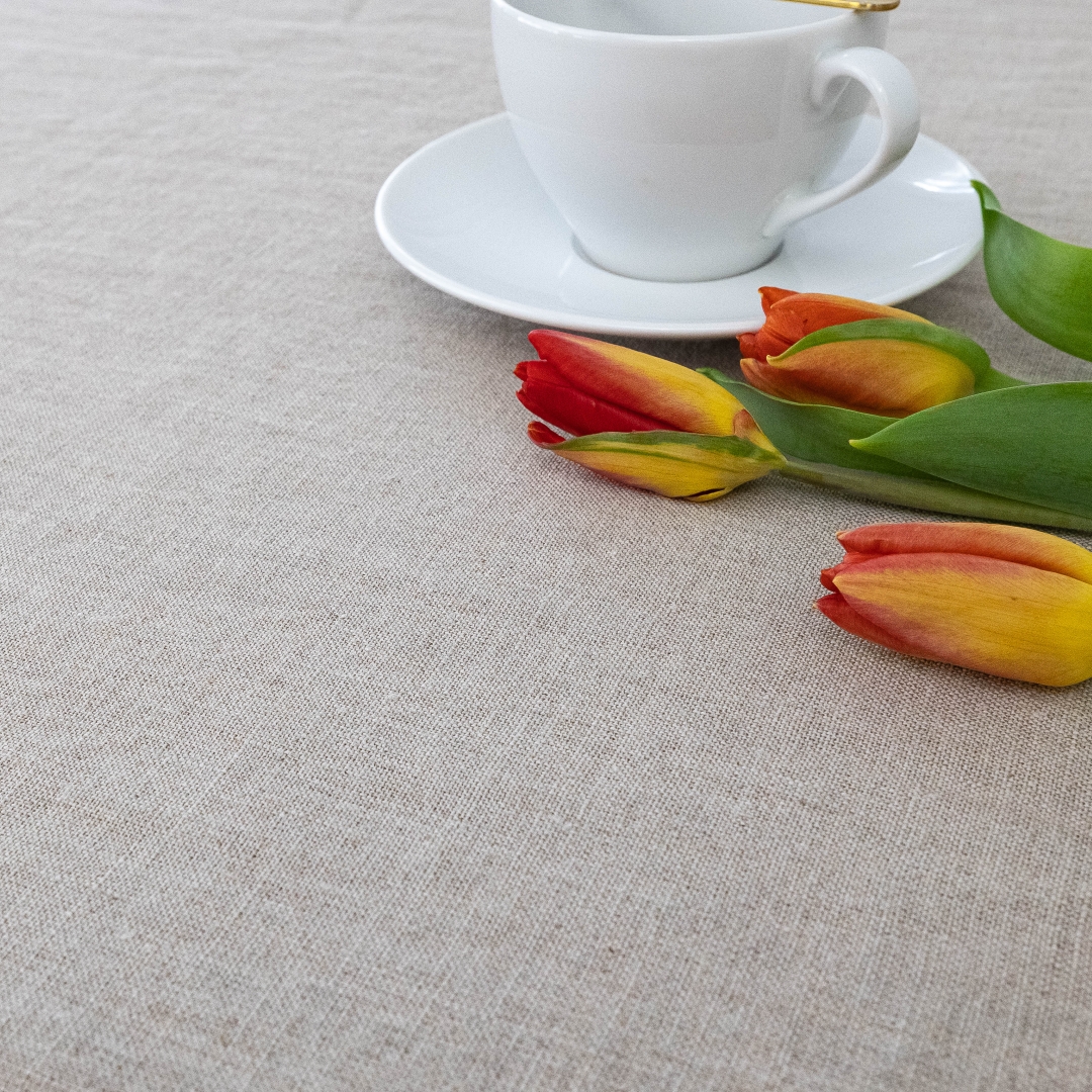 Obrus lniany 100% – Natural to propozycja dla osób, które cenią naturalne tkaniny, spokojną elegancję i ponadczasowy styl. Wykonany z 100% lnu, zachwyca autentyczną lnianą strukturą, miękkim opadem oraz swobodną, szlachetną formą, która pięknie układa się na stole.