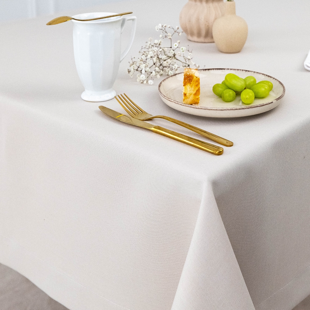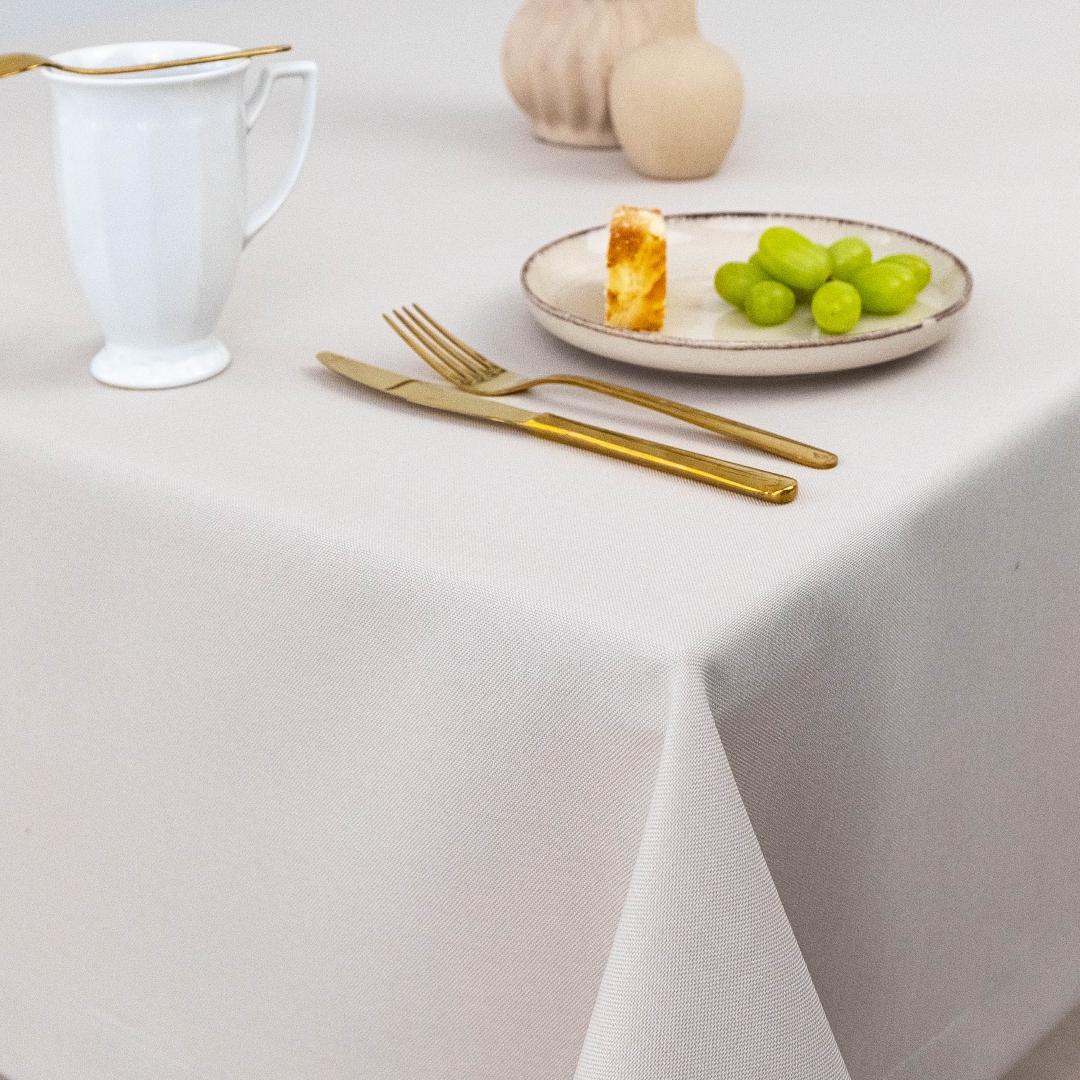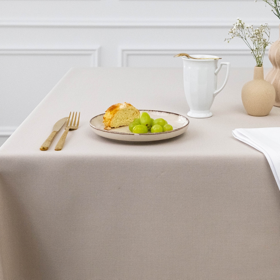 Obrus plamoodporny LUMINA – Warm Beige to propozycja dla osób, które szukają eleganckiego, gładkiego obrusu o premium charakterze. Ciepły beżowy odcień pięknie wpisuje się w nowoczesne, klasyczne i minimalistyczne wnętrza, dzięki czemu obrus doskonale prezentuje się zarówno w domu, jak i w przestrzeniach komercyjnych.