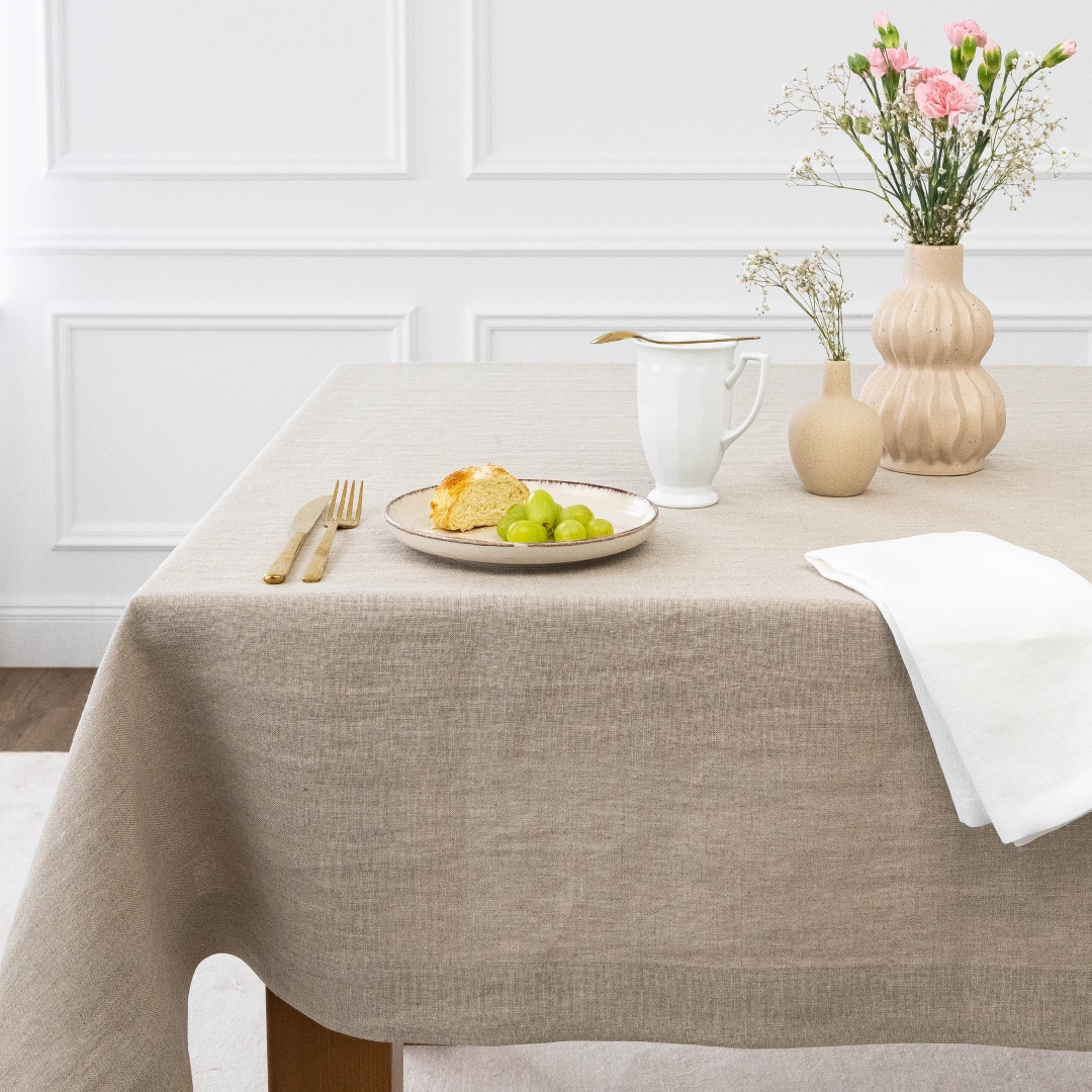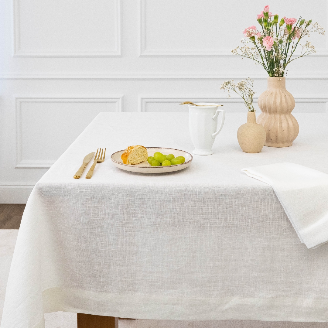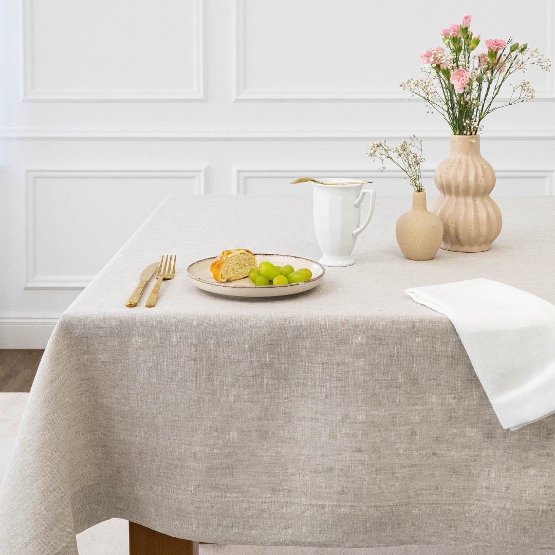 Lniane obrusy na stół łączą w sobie elegancję, prostotę i uniwersalność. Dzięki temu łatwo dopasować je do różnych wnętrz oraz okazji. Świetnie komponują się z białą porcelaną, szkłem, drewnianymi dodatkami, ceramiką i lnianymi serwetami, tworząc harmonijną i estetyczną oprawę stołu.