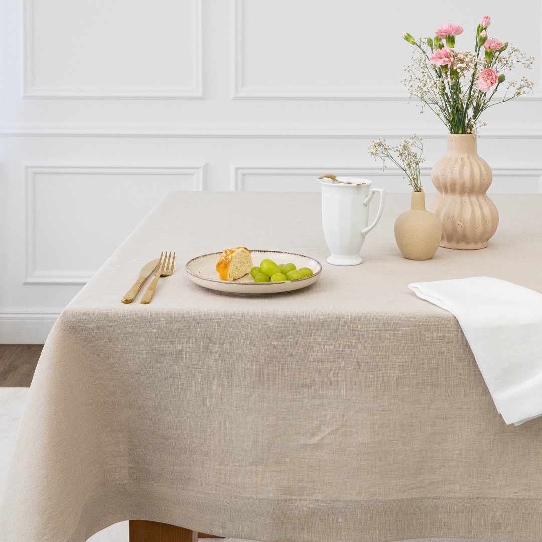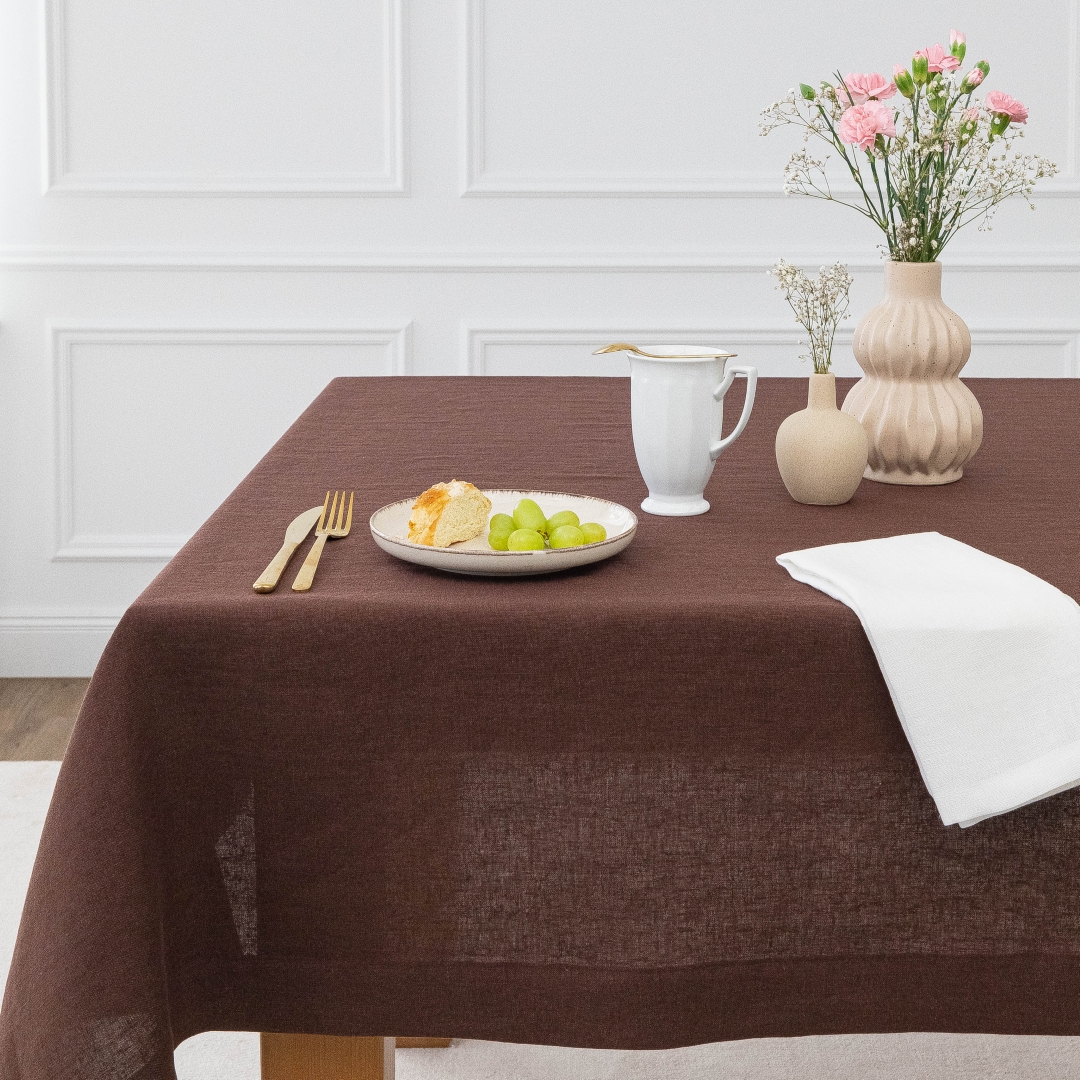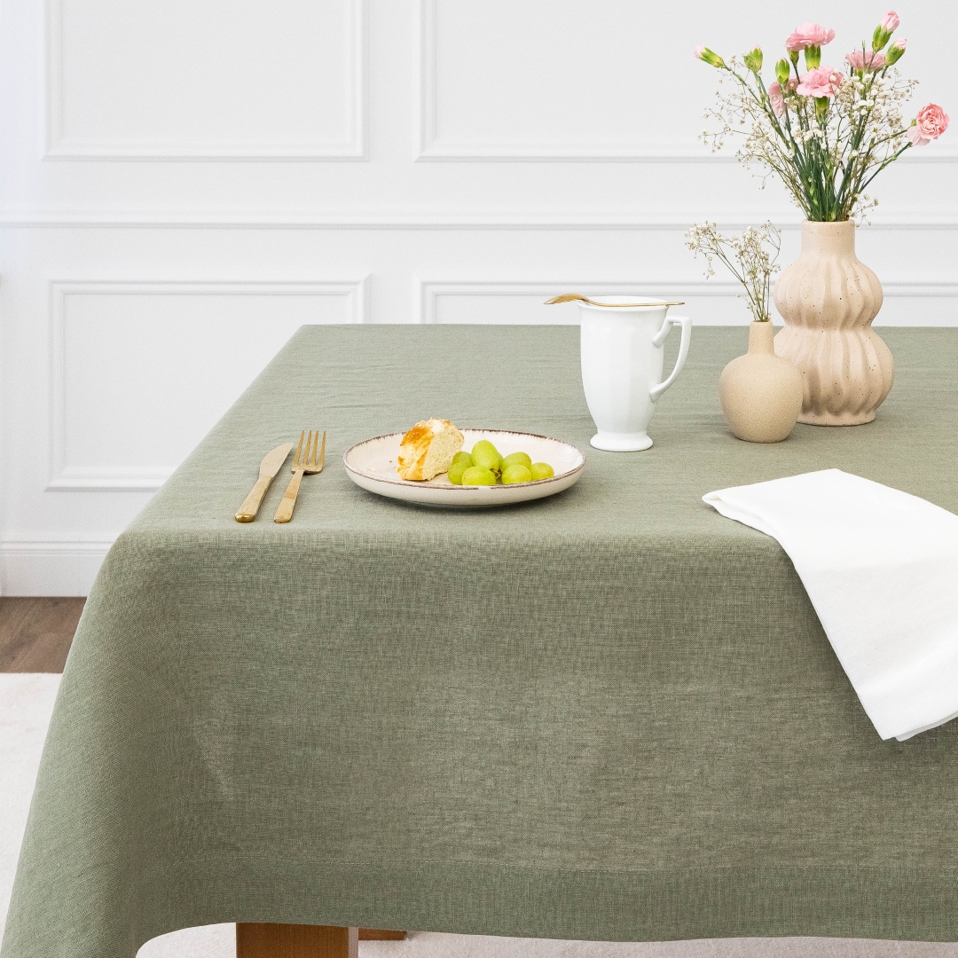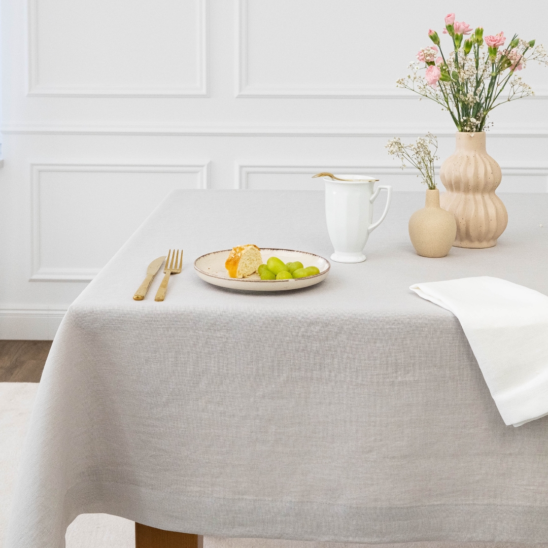 Lniane obrusy na stół łączą w sobie elegancję, prostotę i uniwersalność. Dzięki temu łatwo dopasować je do różnych wnętrz oraz okazji. Świetnie komponują się z białą porcelaną, szkłem, drewnianymi dodatkami, ceramiką i lnianymi serwetami, tworząc harmonijną i estetyczną oprawę stołu.