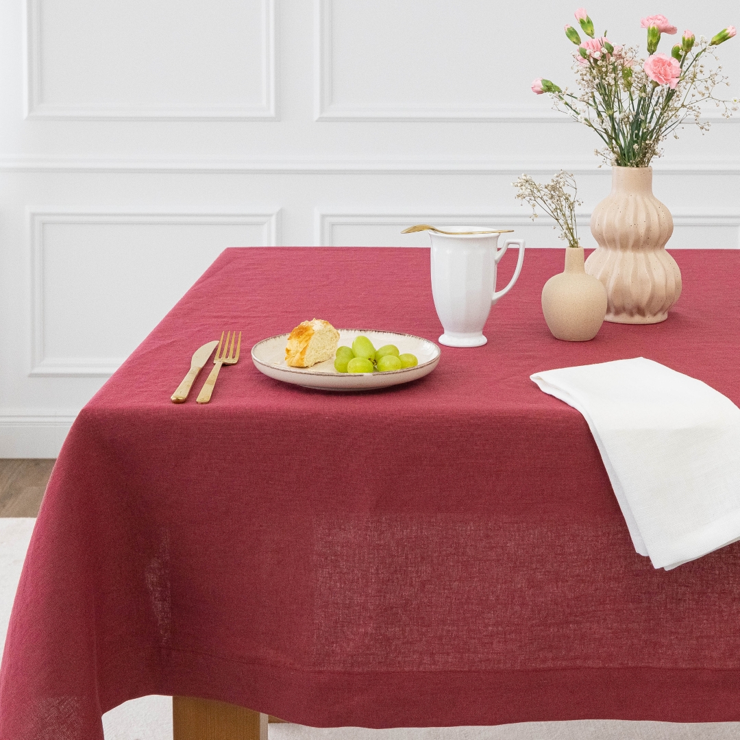 Wybierając obrus na stół lniany, warto zwrócić uwagę na kolor, rozmiar i charakter wnętrza. Jasne odcienie rozświetlają aranżację i pasują do spokojnych, eleganckich przestrzeni. Ciemniejsze lub bardziej nasycone barwy dodają stołowi wyrazistości i sprawdzają się jako mocniejszy akcent dekoracyjny.